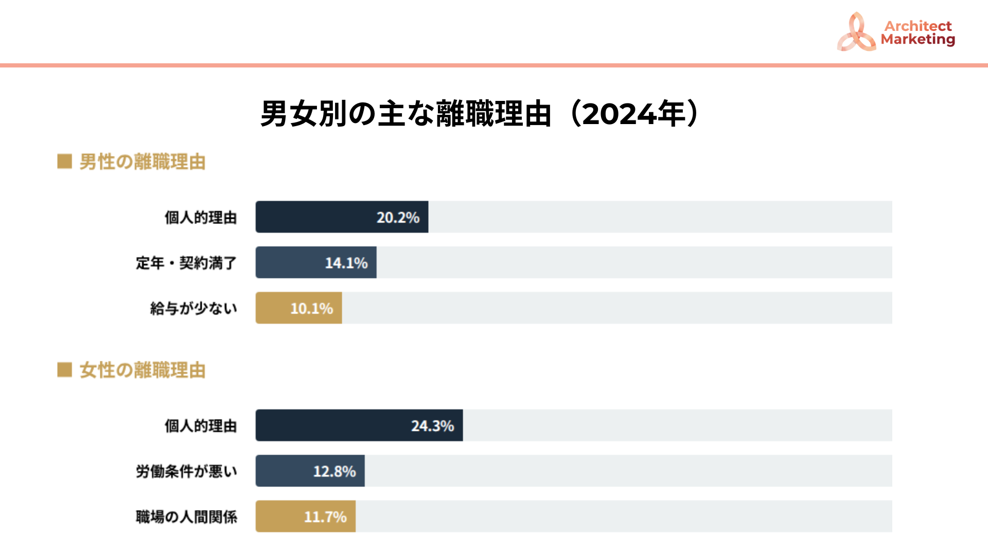 女性:職場の人間関係 34.0%/その他の個人的理由 32.4%(人間関係が非常に大きい)